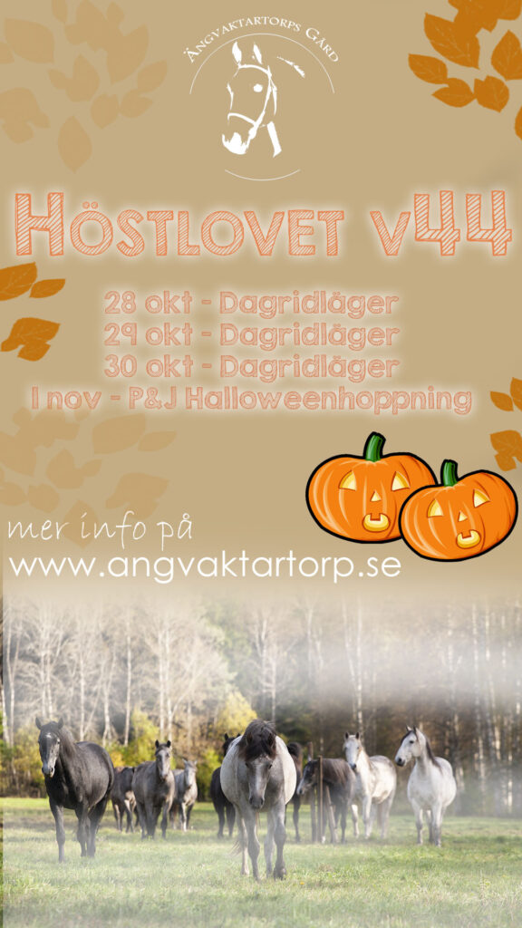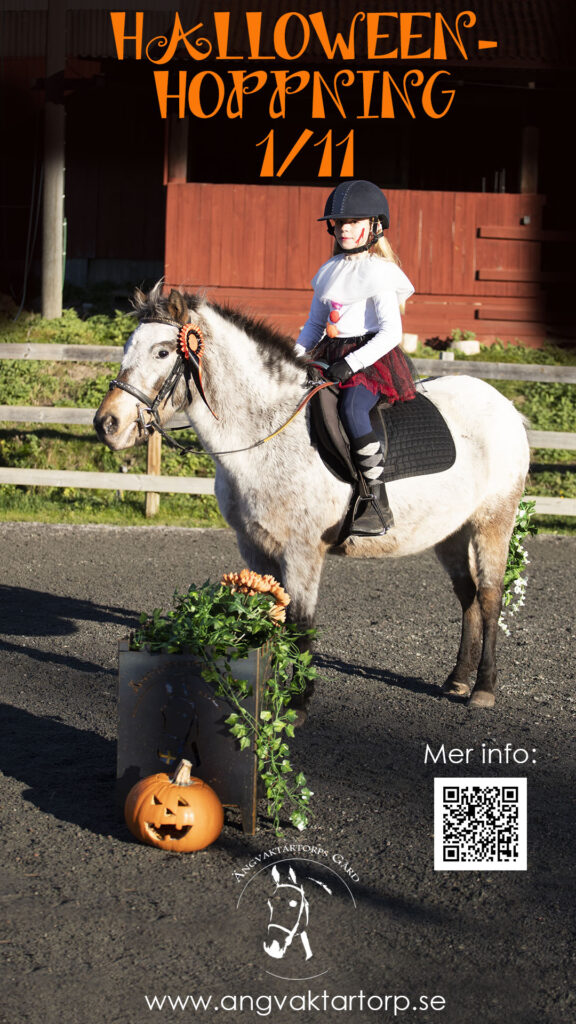 Anmälan: Anmäl dig via mail till hanna@angvaktartorp.se skriv ”Halloweenhoppning” i ämnesraden. Anmälan är bindande.